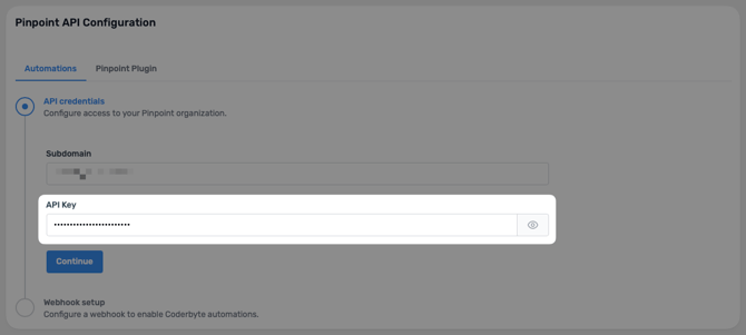 Step 4: Paste that newly created API key in the API Key field in Coderbyte and click Continue.