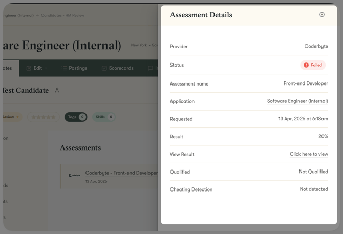 Step 5: Once the candidate submits the assessment, view the result by clicking on the Assessment item: