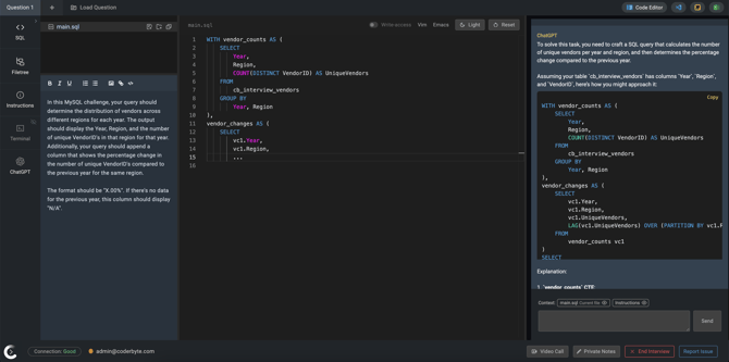 - Alternatively, if set to Off, by default candidates cannot use ChatGPT until an interviewer enables it. Interviewers can toggle this feature on by clicking the ChatGPT icon shown in the navigation bar on the left.