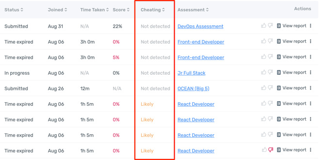 • Detected means that the candidate behaved in ways that indicate they definitely cheated